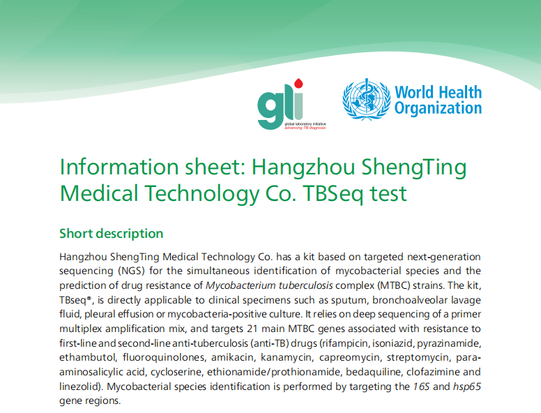 WHO和GLI聯合推薦圣庭醫療TBseq?